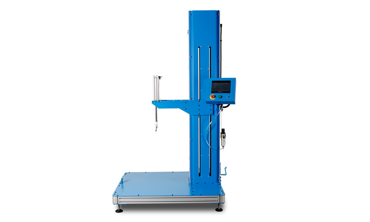 2. 氣缸安裝在可以電動調節高度的懸臂梁上,調節懸臂梁高度以適用不同大小的產品測試;